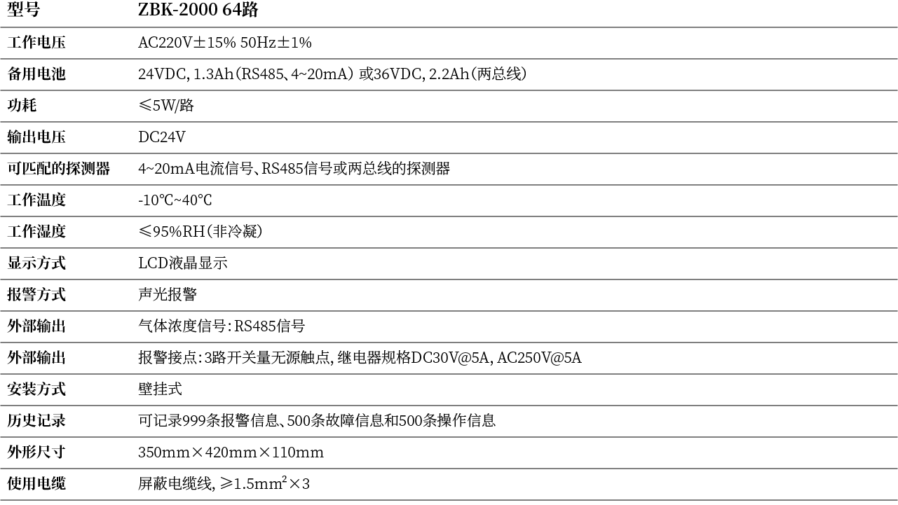 ·可与各种4~20mA信号输出、RS485信号或两总线的气体探测器配合